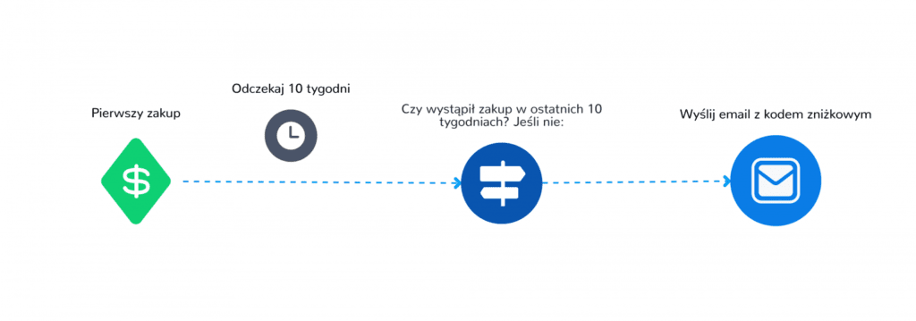 Jednym z bardziej wartościowych automatycznych scenariuszy, który powinniśmy mieć ujęty w swojej strategii marketing automation, jest zautomatyzowana komunikacja do klientów, którzy dokonali zamówienia jakiś czas temu, ale od tamtej pory do nas nie wrócili.