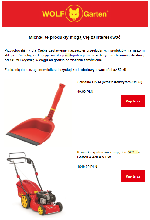 Dobrze przemyślane, regularnie wysyłane i zawierające ciekawą treść newslettery mogą przełożyć się bezpośrednio na zwiększenie sprzedaży. Warto dobrze przemyśleć zawartość tej komunikacji i upewnić się, że nie jest to tylko materiał czysto reklamowy, ale dostarczający wartościowych dla naszych odbiorców informacji. W przypadku np. branży ogrodniczej może być to przegląd działań, które należy wykonać w ogrodzie w danej porze roku i przy okazji zasugerować narzędzia z naszej oferty.
