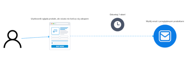 Marketing Automation ma w tym zakresie doskonałe możliwości. Mając odpowiednią ilość zgód marketingowych jesteśmy w stanie stale monitorować, którzy użytkownicy (ze zgodami) jakie przeglądądają produkty. Scenariusz remarketingu dynamicznego zidentyfikuje te osoby i może po pewnym czasie od wizyty klienta sprawdzić, czy nastąpił zakup. Jeśli nie, dobrą praktyką jest wysyłanie do tych osób wiadomości z dynamicznymi polami produktowymi, w których pojawią się przeglądane przez nich towary. Wyjątkowo skutecznym typem remarketingu dynamicznego jest taki, który dociera do osób, które dodały produkt do koszyka, ale nie dokończyły zakupu. To szczególnie wartościowa grupa osób, której warto przypomnieć o dokończeniu transakcji.
