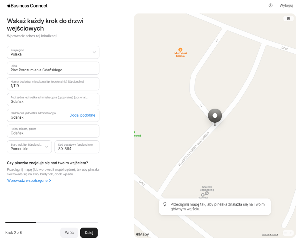 g) Zbliżając się do końca, sprawdźmy jeszcze raz poprawność adresu i numeru telefonu.