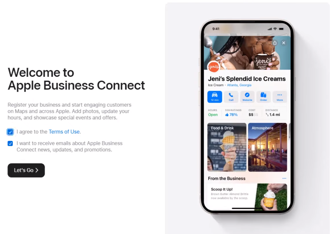 Platforma, analogicznie do Google, ma ułatwić klientom znalezienie firmy w apce Mapy. Dzięki Business Connect mamy więc możliwość samodzielnego zarządzania informacjami prezentowanymi na interaktywnej wizytówce w Mapach Apple. Możemy np. dodawać i aktualizować zdjęcia, logotypy wprowadzić opis firmy, godziny pracy, kategorię i podkategorie działalności.