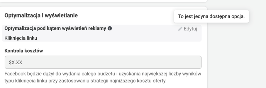 Zmiany dotkną również kampanii Facebook Ads. Największa z nich dotyczy oczywiście kampanii z celem „wiadomości”. Wiele osób przestraszyło się, że ustawienie takiej kampanii nie będzie już dostępne, ale tak się na szczęście nie stało. Wciąż można korzystać z kampanii tego typu, jednak jedyną możliwą opcją optymalizacji jest „kliknięcie linku”.