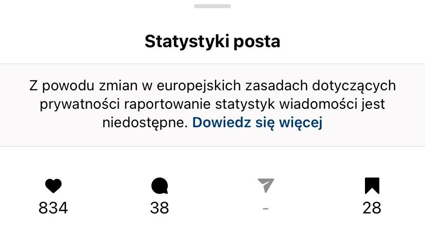 Wszystkie zmiany, które nastąpiły w połowie grudnia, są spowodowane przepisami unijnymi, które nie pozwalają m.in. na raportowanie ilości wiadomości wygenerowanych z kampanii reklamowych. Na Instagramie natomiast nie sprawdzimy już ile razy nasze posty były udostępnione w wiadomościach.