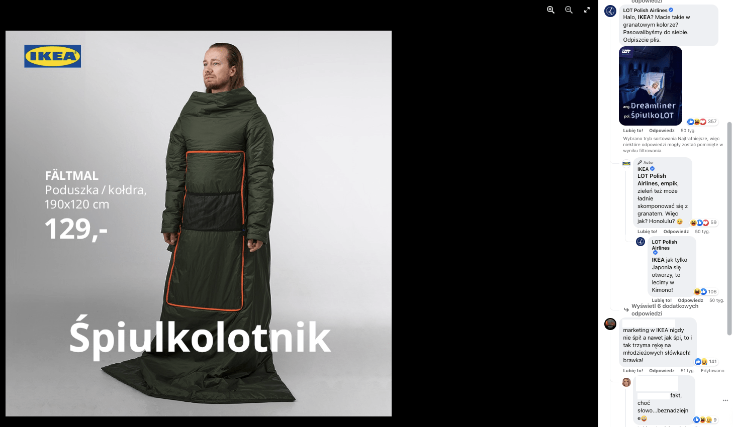 Wyraźny peak w liczbie treści pojawił się 7 grudnia 2021, kiedy to internauci okrzyknęli “śpiulkolot” młodzieżowym słowem roku. IKEA wykorzystała gorący temat dyskusji do promowania swojej oferty. Post marki stał się treścią viralową.